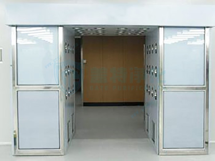 货物进入洁净室所必需的通道,它可以减少货物进出洁净室所带来的污染问题。货淋室的两道货淋室门电子互锁,可以兼起气闸室的作用,防未被净化的空气进入洁净室,达到有效的净化效果,经高效过滤器过滤后的洁净气流由可旋转喷嘴从各个方向喷射至物体表面,有效而迅速清除尘埃粒子,带有尘埃粒子的空气再由初、高效过滤器过滤后重新循环到风淋区域。